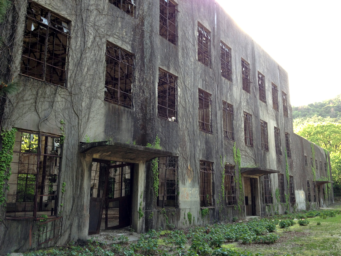 こちらの写真は毒ガス生産に必要な電力を供給していた発電所跡の外観と内観