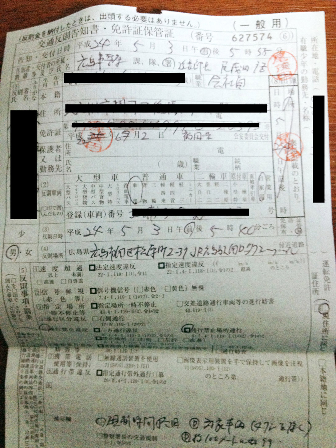 まぁ悪いの私なんだけどさ・・・通行禁止場所通行違反らしいです