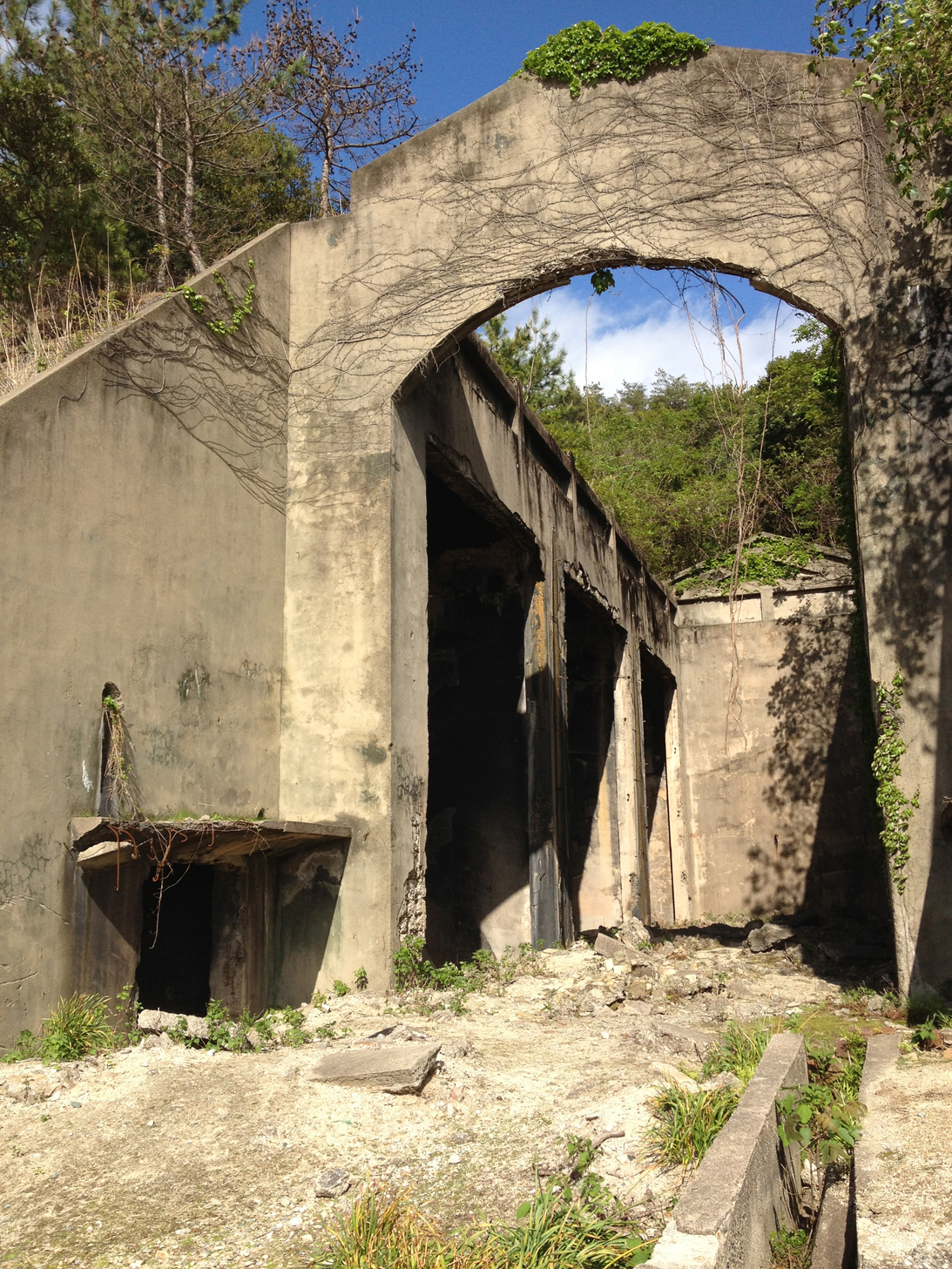 こちらの写真は毒ガス生産に必要な電力を供給していた発電所跡の外観と内観