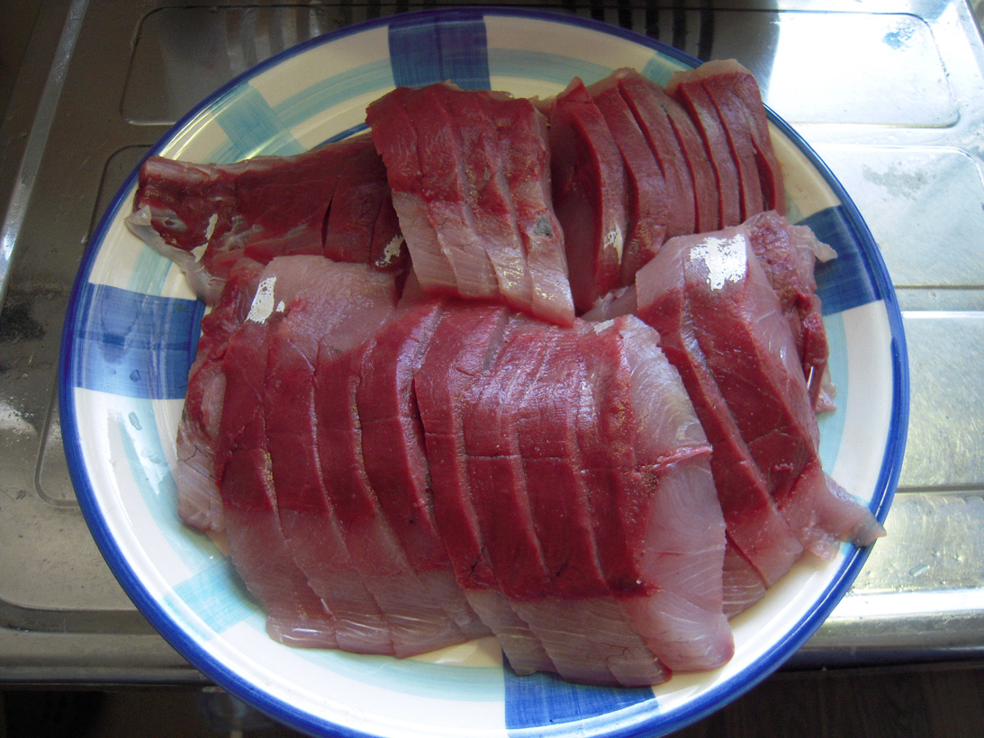 という下らないネタを考えつつ3枚におろし、刺身にしてみました